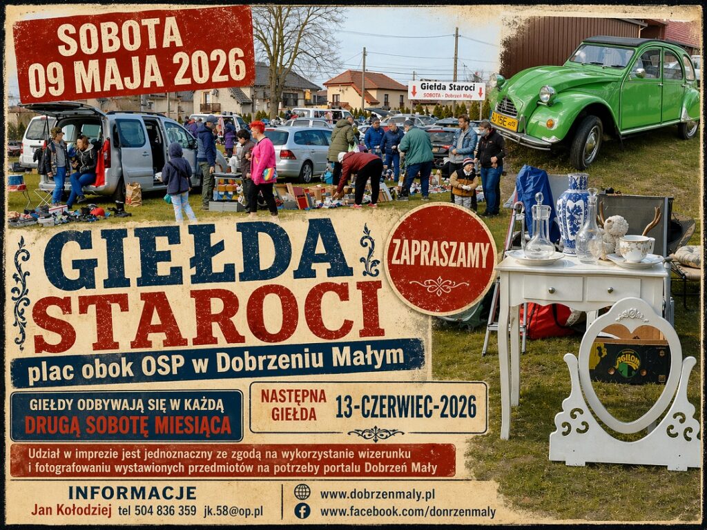 Witamy na Stronie Sołectwa Dobrzeń Mały Najnowsze informacje 🍀 Akcja Czysta Odra 🍀 ⚖ Majowa Giełda Staroci ⚔ Jak było na Giełdzie Staroci zobacz w zakładce Wydarzenia lub kliknij przycisk WYDARZENIA Dobrzeń Mały w Obiektywie
