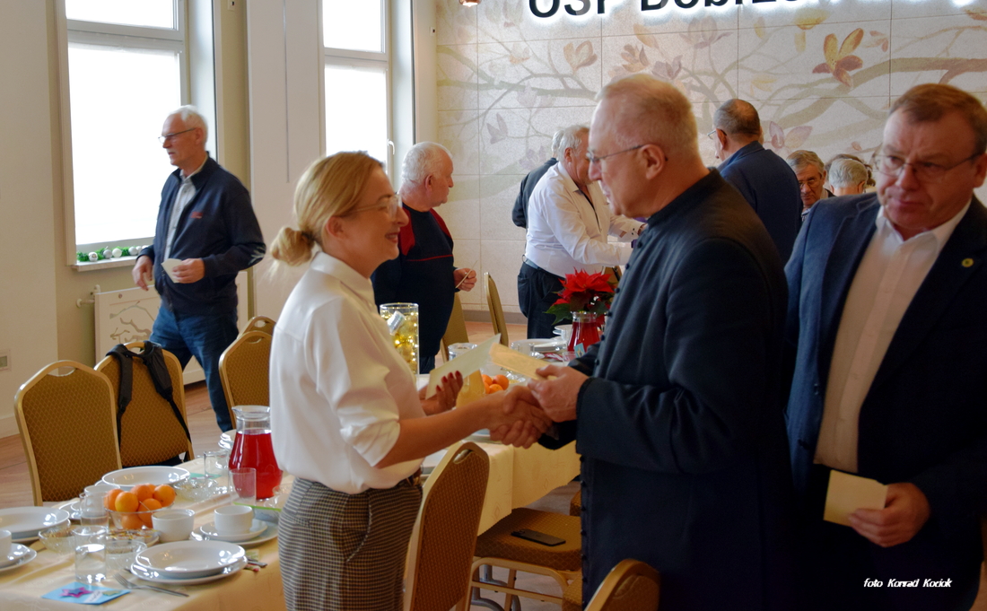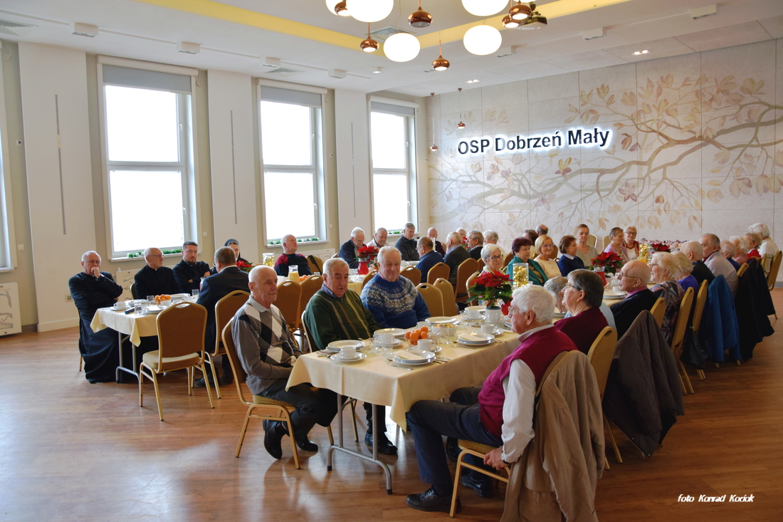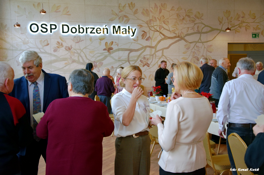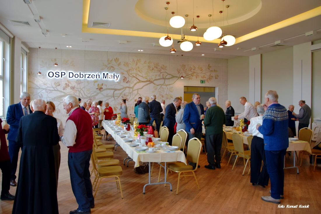 Do Świąt Bożego Narodzenia coraz bliżej, z tej też okazji w sali OSP w Dobrzeniu Małym odbyła się doroczna wigilia dla osób samotnych i seniorów. W tym roku na spotkaniu było obecnych ponad pięćdziesiąt osób. Wszystkich przybyłych powitał organizator tego spotkania Sołtys Jan Kołodziej po nim głos zabrali Wójt Gminy Piotr Szlapa oraz Ks. Proboszcz Jan Polok. Po oficjalnych powitaniach Ks. Proboszcz poświęcił opłatki i wszyscy przystąpili do składania sobie świątecznych życzeń. Po życzeniach zaproszeni zasiedli do uroczystej Wigilii. Nie zabrakło tradycyjnych w naszym regionie potraw, był zupa grzybowa, ryba oraz tradycyjna makówka nie zabrakło też surówek. Po daniach głównych było ciasto, kawa i owoce oraz ciasteczka. Pobyt przybyłym umilały występy, Najpierw piękny występ zaprezentowały dzieci z naszego Przedszkola w Dobrzeniu Małym a nieco później wystąpił zespól Dobrzenianki który umilał czas śpiewając kolędy. Na zakończenie każdy gość otrzymał jeszcze słodkości na drogę do domu. Dziękujemy organizatorom za tak piękne przyjęcie.
