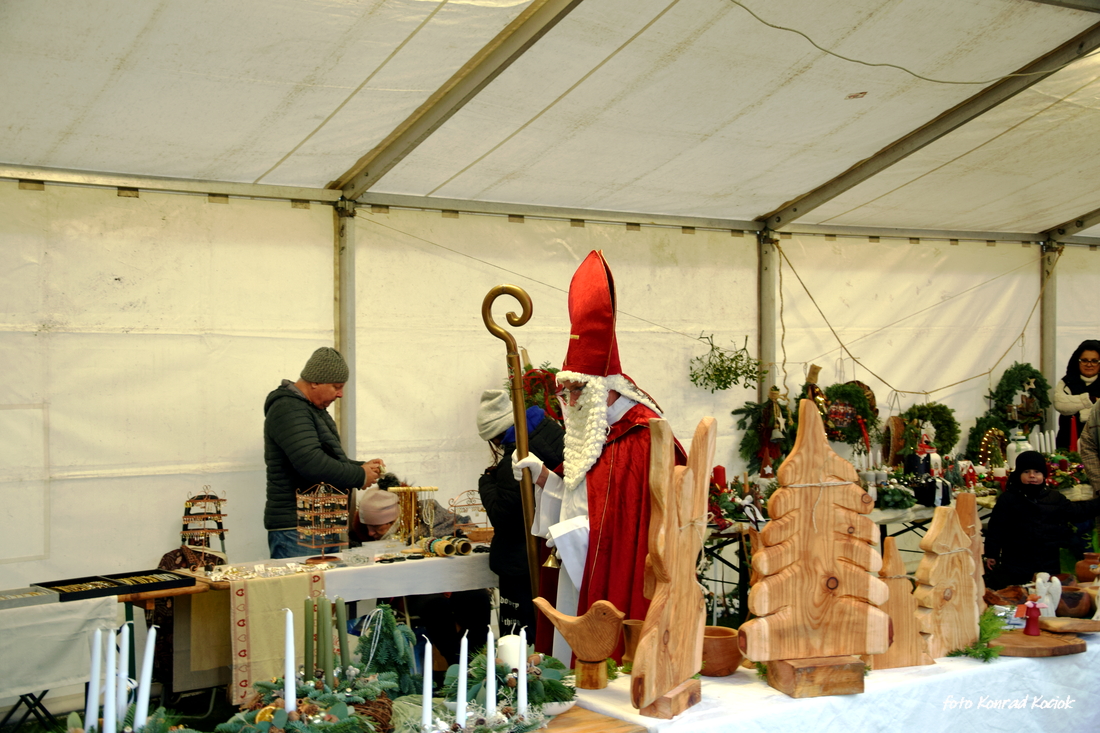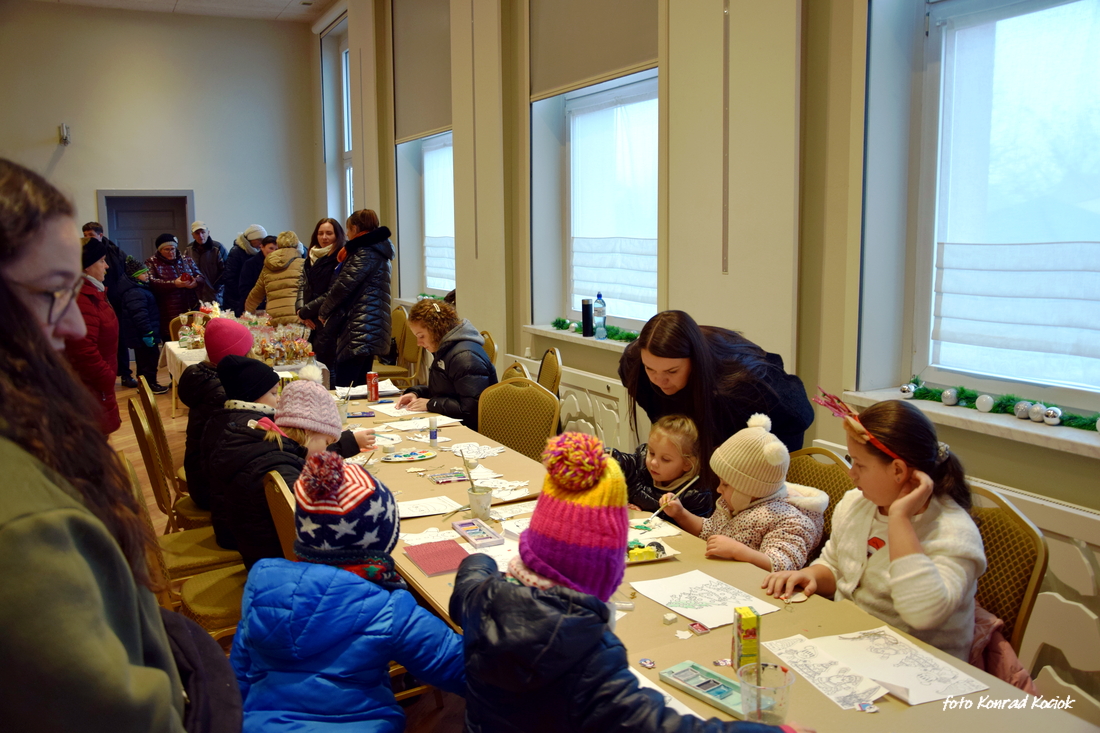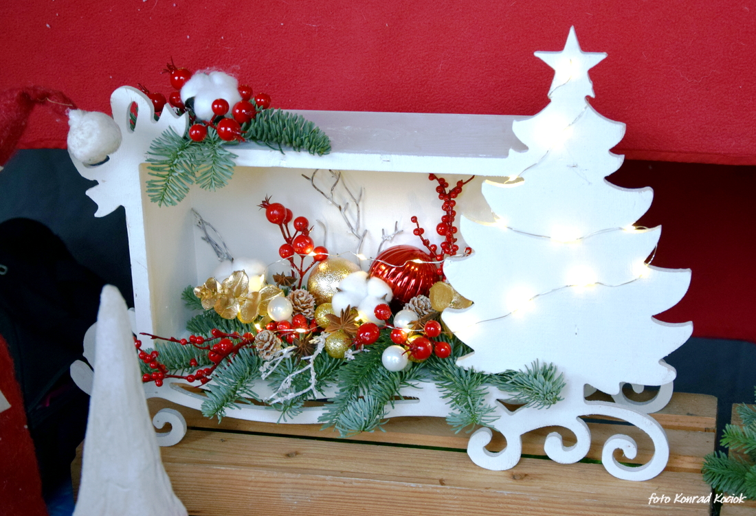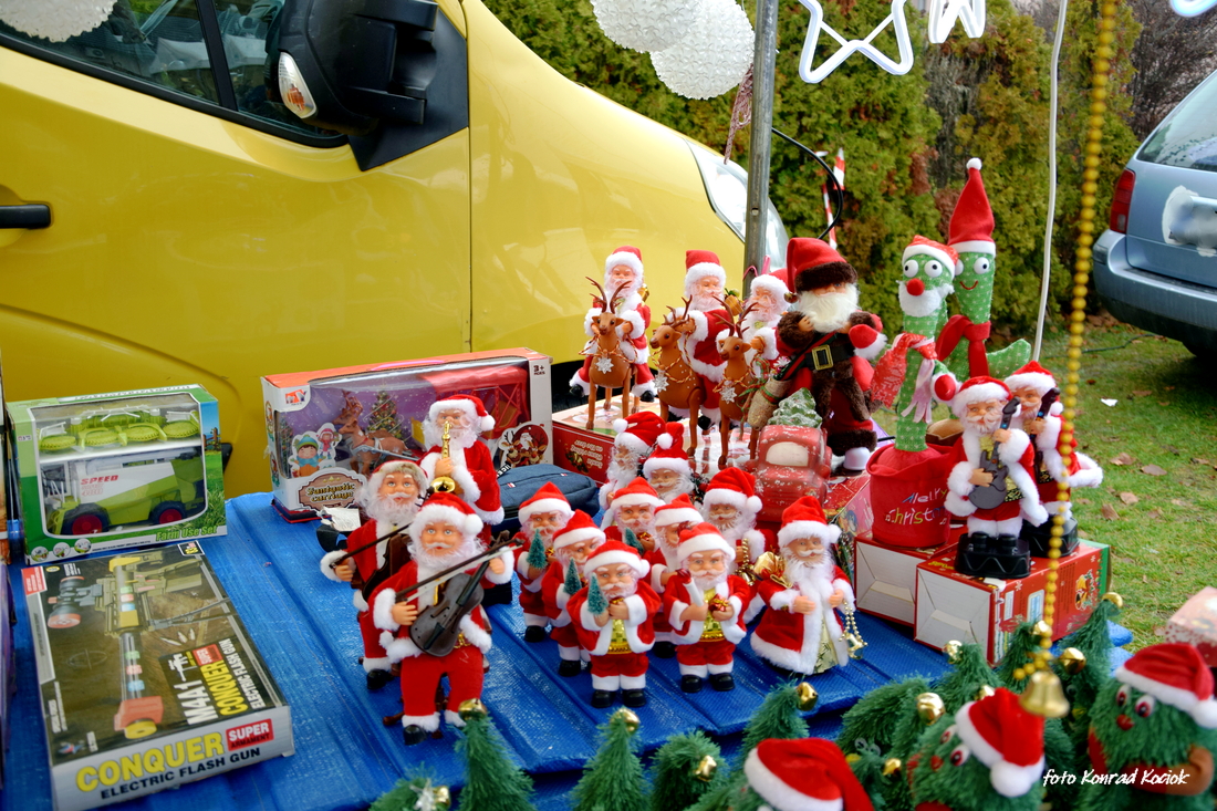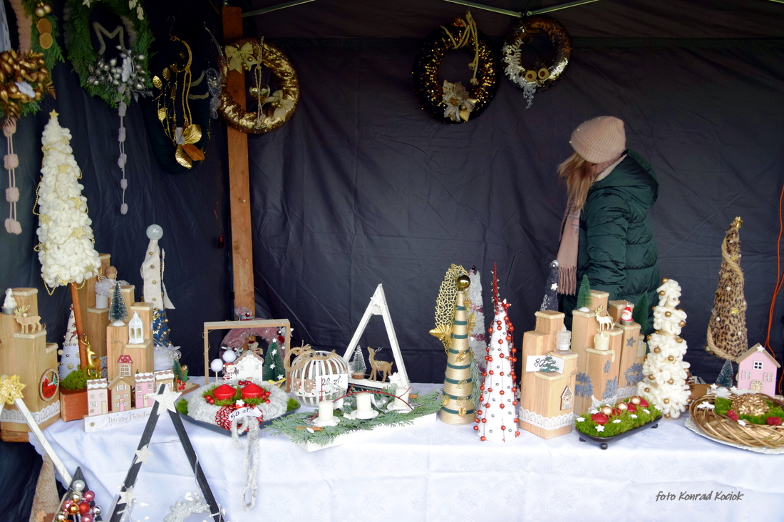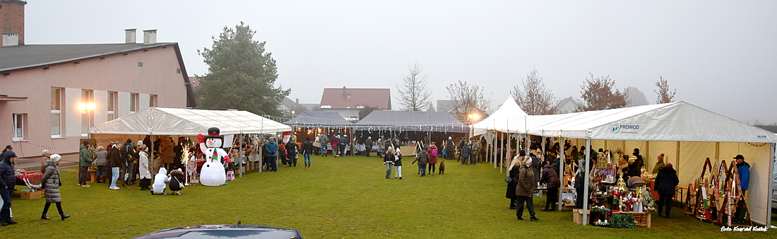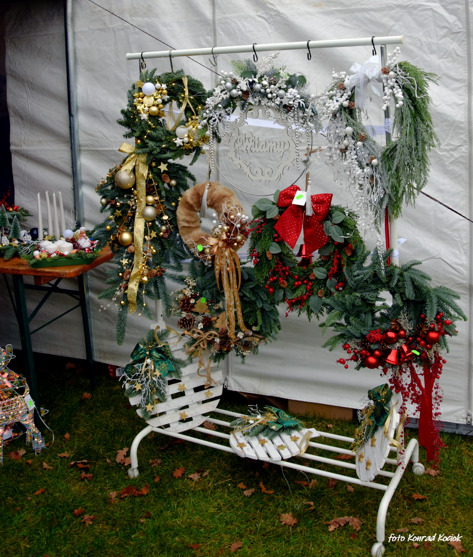 Mgła która obsiadła w niedzielę jakby improwizowała trochę opady śniegu i przypominała zimę podczas tegorocznego Kiermaszu Świątecznego w Dobrzeniu Małym który stał się już tradycją. Kiermasz przyciąga coraz więcej ludzi. Jest coraz więcej wystawców i kupujących. Na tegorocznym kiermaszu było w czym wybierać. Można było kupić przeróżne ozdoby adwentowe i świąteczne, począwszy od choinek żywych w donicach do przeróżnych sztucznych z których niektóre wyglądały jak żywe. W ozdobach można było różności począwszy od wieńców do przeróżnych zawieszek i ozdób stojących, niektóre z nich były prawdziwymi arcydziełami. Zwyczajowo na kiermaszu można było nabyć świece wigilijne Caritas i opłatki. Nie brakowało też świątecznych wypieków od ciast do przeróżnych pierników, że nie wspomnę już o tradycyjnych swojskich wędlinach. Najważniejszą atrakcją Kiermaszu jak dla dzieci ich rodziców był oczywiście Święty Mikołaj, który tym najmłodszym rozdawał upominki. Dla tych którzy chcieli sami chcieli spróbować wykonać jakieś ozdoby i stroiki przygotowane były warsztaty zdobnicze dla dorosłych i dla dzieci. Wszystkim którym zrobiło się żal, że nie byli na kiermaszu zapraszamy za rok a prędzej na Jarmark Wielkanocny.